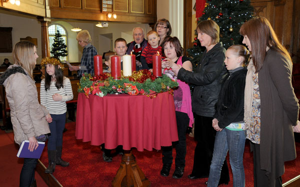 We light this candle to recall the peace we have in Christ, to remember that he himself is our peace and he brings peace to all who put their faith and trust in him.
